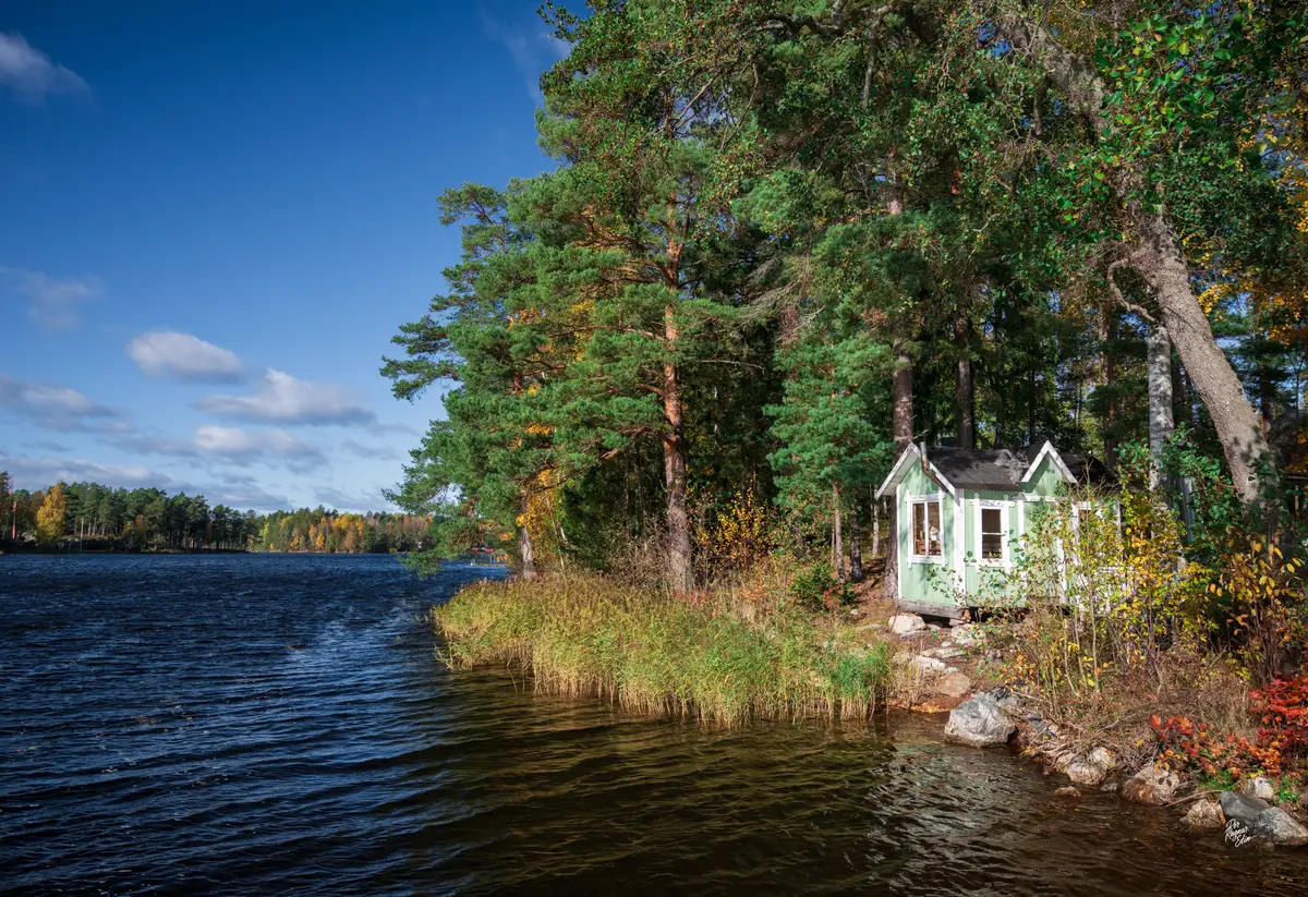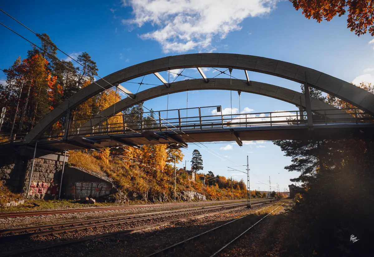 Jag fortsatte med bilen ner mot Ängelsberg där jag tog några bilder nere vid järnvägsspåret och sjön. Solljuset gjorde höstförgerna extra mättade.