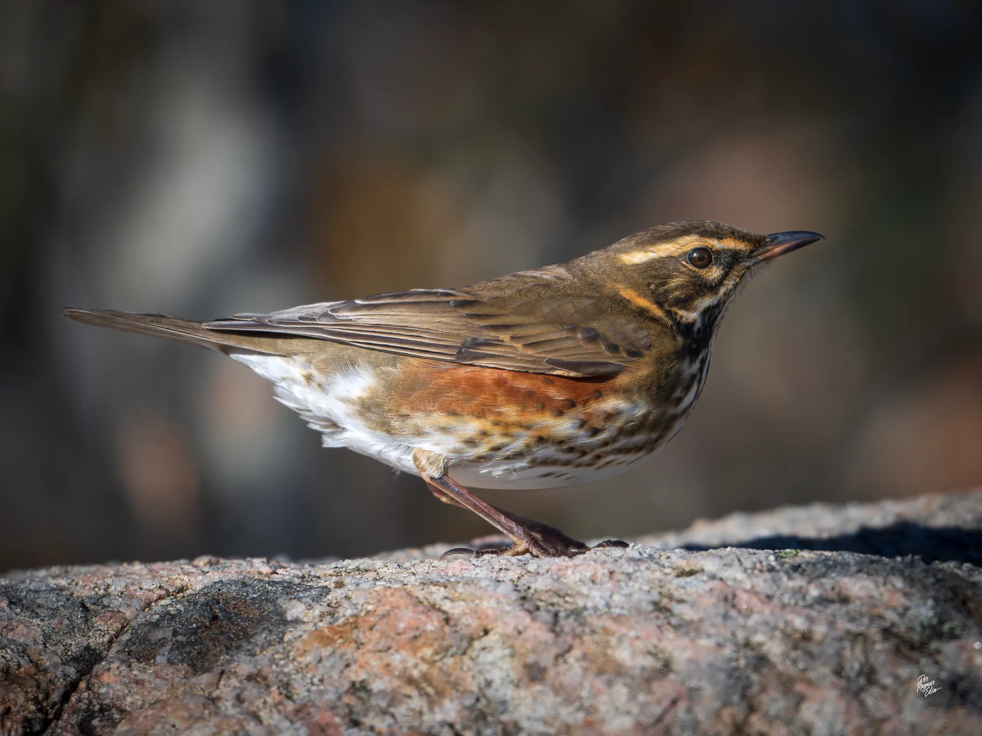 Varken hökuggla eller kungsörn fick jag se den här gången, men den här rödvingetrasten poserade nyfiket en stund.